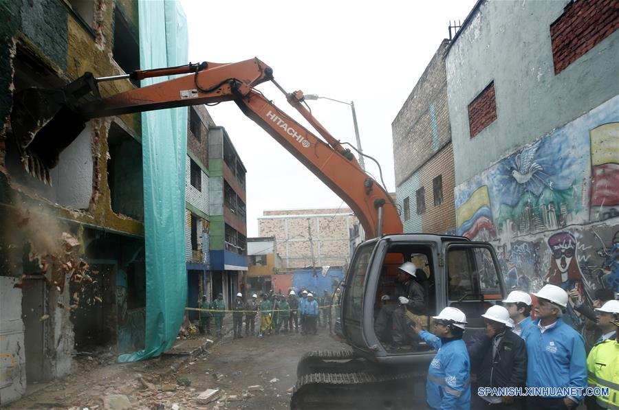Trabajadores observan el funcionamiento de una retroexcavadora durante demolición de los predios que conformaban el sector conocido como "Bronx", en el centro de Bogotá, capital de Colombia, el 10 de agosto de 2016. De acuerdo con información de la prensa local, el sector del "Bronx" era un centro de delincuencia organizada y uno de los más peligrosos del mundo. En junio la Alcaldía Mayor de Bogotá realizó una intervención con 2,500 efectivos de la fuerza pública para comenzar el desmantelamiento de este lugar. El miércoles empezó la demolición de los predios que acogían actividades delincuenciales en el "Bronx", que durante a?os fungió como lugar de narcotráfico, secuestro, trata de personas y tortura. La Alcaldía Mayor de Bogotá dijo en su cuenta de Twitter que el "Bronx" se convertirá en un proyecto de renovación urbana que contempla equipamiento urbano y comercial.(Xinhua/Juan Páez/COLPRENSA)