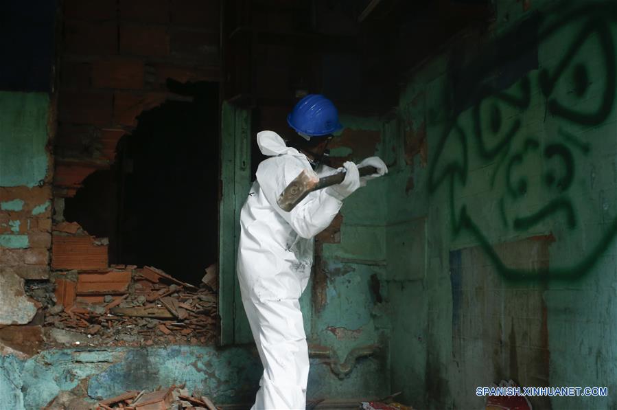 Un trabajador labora en la demolición de los predios que conformaban el sector conocido como "Bronx", en el centro de Bogotá, capital de Colombia, el 10 de agosto de 2016. De acuerdo con información de la prensa local, el sector del "Bronx" era un centro de delincuencia organizada y uno de los más peligrosos del mundo. En junio la Alcaldía Mayor de Bogotá realizó una intervención con 2,500 efectivos de la fuerza pública para comenzar el desmantelamiento de este lugar. El miércoles empezó la demolición de los predios que acogían actividades delincuenciales en el "Bronx", que durante a?os fungió como lugar de narcotráfico, secuestro, trata de personas y tortura. La Alcaldía Mayor de Bogotá dijo en su cuenta de Twitter que el "Bronx" se convertirá en un proyecto de renovación urbana que contempla equipamiento urbano y comercial.(Xinhua/Juan Páez/COLPRENSA)