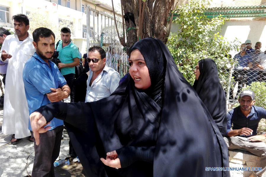BAGDAD, agosto 10, 2016 (Xinhua) -- Familiares de las víctimas se reúnen en el Hospital Yarmouk en Bagdad, capital de Irak, el 10 de agosto de 2016.