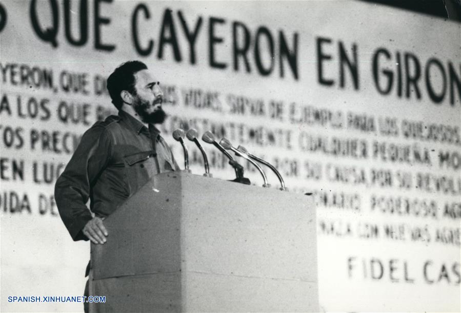 LA HABANA, agosto 11, 2016 (Xinhua) -- Imagen del 15 de enero de 1960, de Fidel Castro, pronunciando un discurso en La Habana, Cuba. El líder de la Revolución Cubana, Fidel Castro, es una de las figuras políticas que más pasiones despierta en el mundo. El cumplea?os número 90 de Castro, el próximo 13 de agosto, vuelve a acaparar la atención mundial hacia Cuba, un país que en la actualidad vive cambios políticos de gran trascendencia para el curso del Caribe y el mundo. Fidel Castro nació el 13 de agosto de 1926 en Birán, en la antigua provincia de Oriente, hoy Holguín, situada en el noreste de Cuba, hijo del inmigrante gallego Angel Castro y la campesina cubana Lina Ruz. En 2006, tras someterse a una cirugía por una hemorragia intestinal, entregó de manera temporal la presidencia a su hermano Raúl, segunda figura política de la Revolución, y el 19 de febrero de 2008 declinó su reelección. En la actualidad está retirado de todos sus cargos en el Estado, dedicando su tiempo a investigaciones científicas y en algunas ocasiones recibe en su casa a personalidades extranjeras. (Xinhua/Keystone Press Agency/ZUMAPRESS)