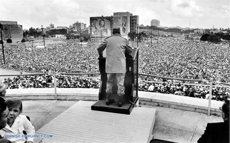 LA HABANA, agosto 12, 2016 (Xinhua) -- Imagen del 8 de enero de 1969, de Fidel Castro, pronunciando un discurso durante la celebración del 10 aniversario de la Revolución, en La Habana, Cuba. El líder de la Revolución Cubana, Fidel Castro, es una de las figuras políticas que más pasiones despierta en el mundo. El cumplea?os número 90 de Castro, el próximo 13 de agosto, vuelve a acaparar la atención mundial hacia Cuba, un país que en la actualidad vive cambios políticos de gran trascendencia para el curso del Caribe y el mundo. Fidel Castro nació el 13 de agosto de 1926 en Birán, en la antigua provincia de Oriente, hoy Holguín, situada en el noreste de Cuba, hijo del inmigrante gallego Angel Castro y la campesina cubana Lina Ruz. En 2006, tras someterse a una cirugía por una hemorragia intestinal, entregó de manera temporal la presidencia a su hermano Raúl, segunda figura política de la Revolución, y el 19 de febrero de 2008 declinó su reelección. En la actualidad está retirado de todos sus cargos en el Estado, dedicando su tiempo a investigaciones científicas y en algunas ocasiones recibe en su casa a personalidades extranjeras. (Xinhua/Reg Innell/Toronto Star/ZUMAPRESS)