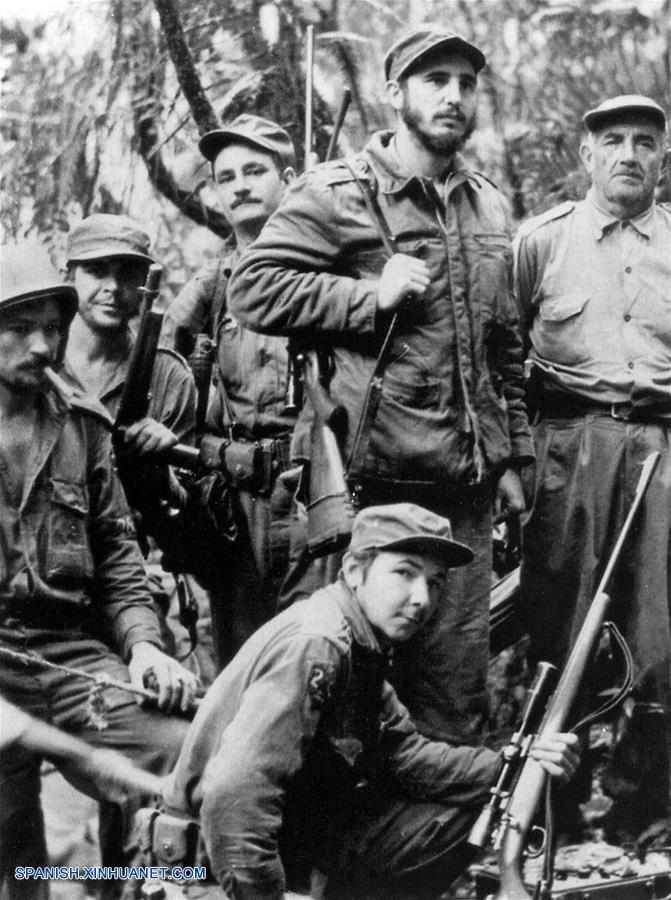 LA HABANA, agosto 12, 2016 (Xinhua) -- Imagen de archivo sin localizar de 1958, de Fidel Castro (2-d), Raúl Castro (abajo), y Ernesto Guevara (2-i). El líder de la Revolución Cubana, Fidel Castro, es una de las figuras políticas que más pasiones despierta en el mundo. El cumplea?os número 90 de Castro, el próximo 13 de agosto, vuelve a acaparar la atención mundial hacia Cuba, un país que en la actualidad vive cambios políticos de gran trascendencia para el curso del Caribe y el mundo. Fidel Castro nació el 13 de agosto de 1926 en Birán, en la antigua provincia de Oriente, hoy Holguín, situada en el noreste de Cuba, hijo del inmigrante gallego Angel Castro y la campesina cubana Lina Ruz. En 2006, tras someterse a una cirugía por una hemorragia intestinal, entregó de manera temporal la presidencia a su hermano Raúl, segunda figura política de la Revolución, y el 19 de febrero de 2008 declinó su reelección. En la actualidad está retirado de todos sus cargos en el Estado, dedicando su tiempo a investigaciones científicas y en algunas ocasiones recibe en su casa a personalidades extranjeras. (Xinhua/Str)