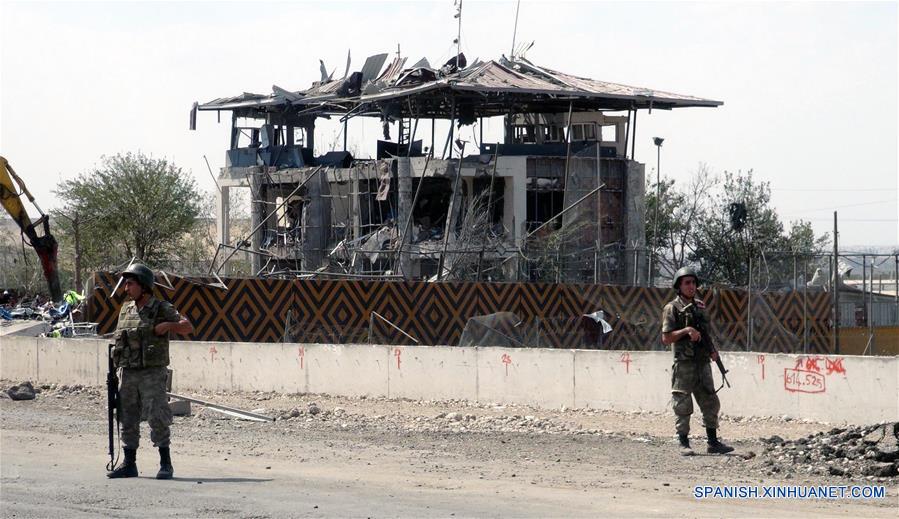 Los soldados de guardia en el lugar de la explosión cerca de una estación de policía de tráfico en el sureste de la provincia de Diyarbakir, 15 de agosto de 2016. (Xinhua / Mert Macit)