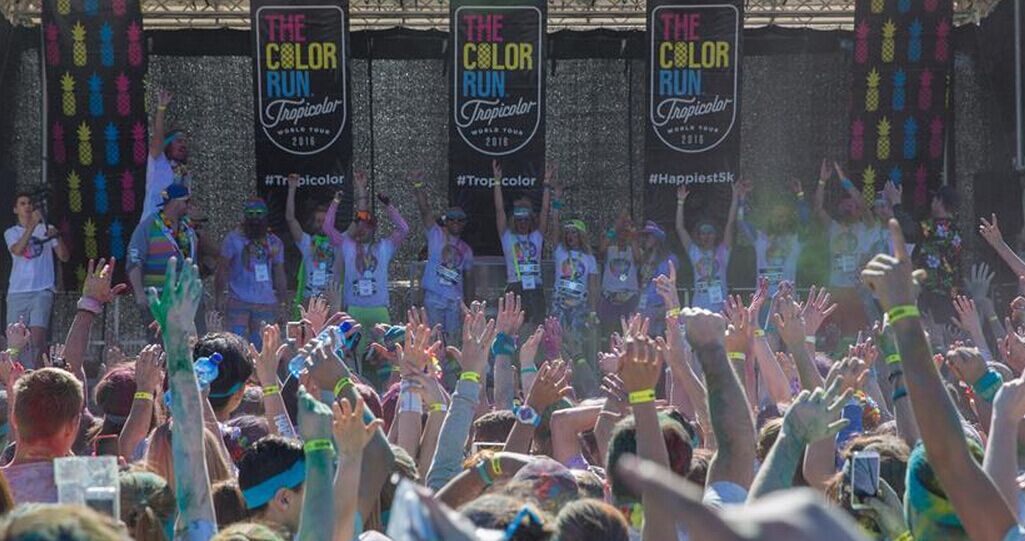 La gente se acerca al escenario después de la Carrera de Colores en Sydney, Australia, el 21 de agosto de 2016. La Carrera de Colores, conocida como "los 5km más felices del planeta", se celebró en Sydney el domingo. Es un evento único que pretende concienciar sobre la salud y la felicidad. En el evento, los participantes terminan cubiertos de una mezcla de polvos de colores hechos de almidón de maíz. (Xinhua/Zhu Hongye)