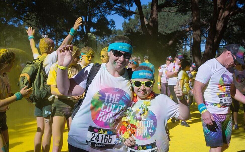 Una madre y su hija posan para las cámaras antes de la Carrera de Colores en Sydney, Australia, el 21 de agosto de 2016. La Carrera de Colores, conocida como "los 5km más felices del planeta", se celebró en Sydney el domingo. Es un evento único que pretende concienciar sobre la salud y la felicidad. En el evento, los participantes terminan cubiertos de una mezcla de polvos de colores hechos de almidón de maíz. (Xinhua/Zhu Hongye)