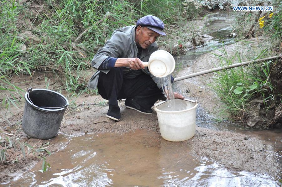Xu Zhiqiang, de 68 a?os, recoge agua para regar árboles plantados en una monta?a de la aldea Zhangchuan en el condado Tongwei, provincia de Gansu, el 23 de agosto de 2016. Xu Zhiqiang y su hermano gemelo Xu Zhigang llevan 48 a?os plantando voluntariamente árboles en las colinas estériles en la meseta Loess. Más de 350 mu (23 hectáreas) de tierras yermas han vuelto a ser verdes gracias la plantación de más de 80.000 árboles y flores. Los esfuerzos de los hermanos no sólo ayudan a crear belleza natural sino también a mejorar el ecosistema local. (Xinhua/Guo Gang)