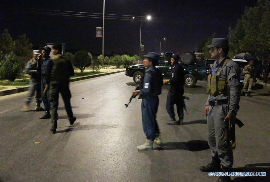 Oficiales de la policía afgana resguardan el sitio de un ataque ocurrido en Kabul, capital de Afganistán, el 24 de agosto de 2016. Al menos un estudiante murió y cerca de 20 personas resultaron heridas después de un ataque con auto bomba y disparos realizados el miércoles por la noche en una universidad privada de Kabul, capital de Afganistán. (Xinhua/Rahmat Alizadah)