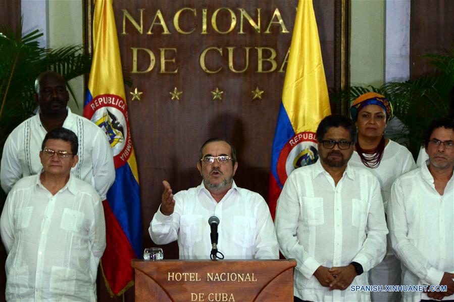 La declaración fue leída por el jefe insurgente en el salón Taganana del Hotel Nacional de Cuba y ante la presencia de 16 miembros del Estado Mayor Central de las FARC, quienes participaron por meses en las negociaciones cerradas el pasado miércoles con el equipo designado por Santos.