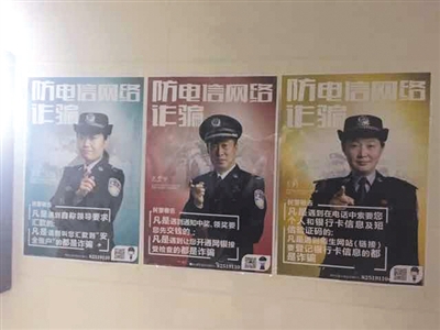 Varios carteles de advertencia a los residentes con las palabras "Cuidado con los fraudes telefónicos" se publicaron en la pared del edificio. (Foto / The Beijing News)