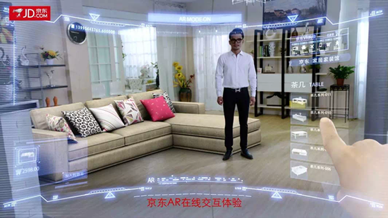 Aparte de la realidad aumentada, JD usa actualmente la tecnología de realidad virtual en las tres “C” (computadoras, comunicaciones y consumo de electrónica), electrodomésticos y otros campos. Utilizando un dispositivo de realidad virtual, los usuarios pueden recoger el producto seleccionado y visualizarlo en 360 grados.
