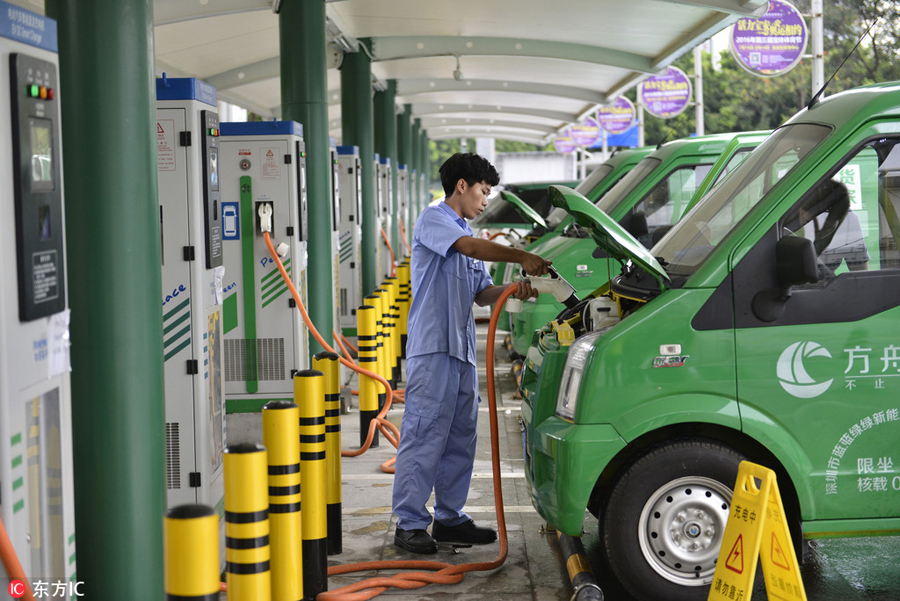 Vehículo de energía limpia en una estación de carga de Shenzhen, provincia de Guangdong. [Foto: IC]