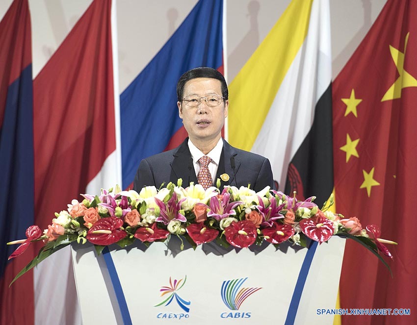 El viceprimer ministro chino Zhang Gaoli indicó hoy que China impulsará el desarrollo de su cooperación amistosa con la Asociación de Naciones del Sureste Asiático (Asean, por sus siglas en inglés) y la construcción de una comunidad de destino común más estrecha entre China y Asean.(Xinhua/Wang Ye)