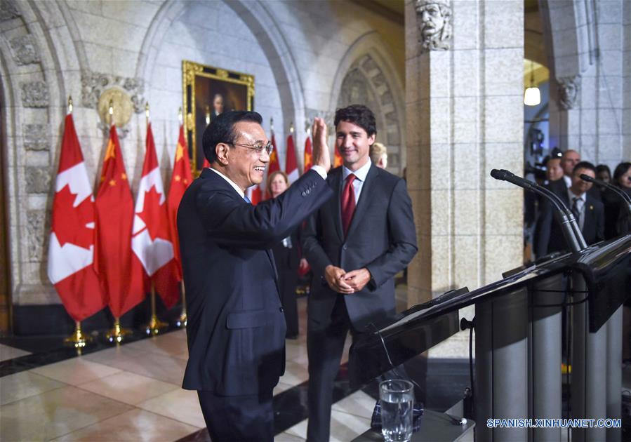 Li, quien realiza una visita oficial a este país de América del Norte, hizo los comentarios durante una conferencia de prensa conjunta con su homólogo canadiense, Justin Trudeau. (Xinhua/Li Xueren)
