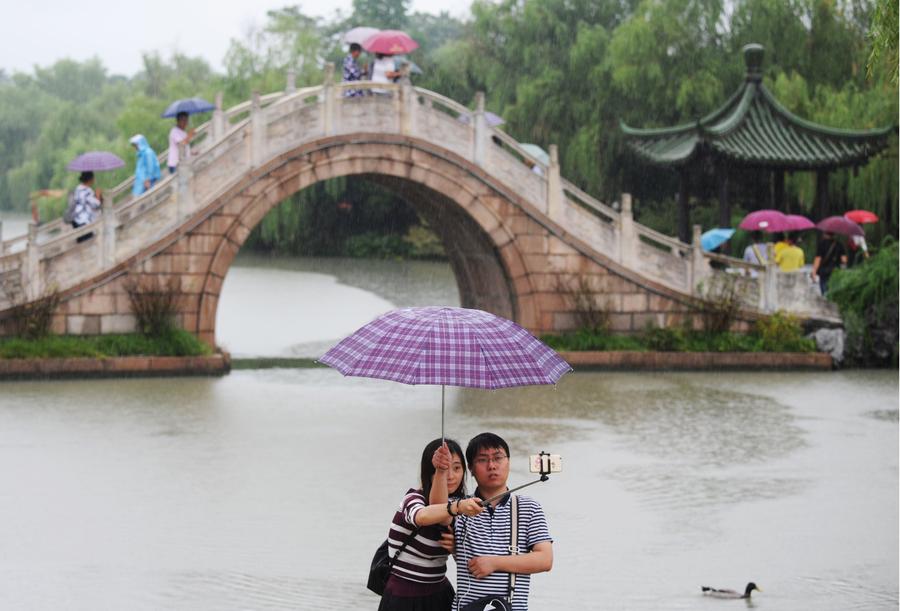 Visitantes toman fotos en Yangzhou, provincia de Jiangsu, 15 de septiembre de 2016. [Foto: Xinhua]