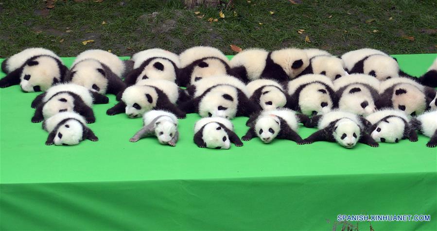 CHENGDU, septiembre 29, 2016 (Xinhua) -- Cachorros de panda gigante permanecen en la Base de Investigación de Crianza de Pandas Gigantes de Chengdu, en Chengdu, en la provncia de Sichuan, en el suroeste de China, el 29 de septiembre de 2016. Un total de 23 cachorros de panda gigante que nacieron en 2016 hicieron su debut el jueves. (Xinhua/Str)