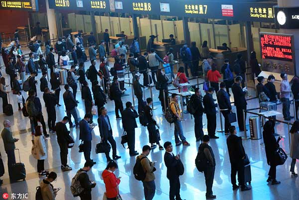 Pasajeros esperan para abordar aviones en un aeropuerto de Shenyang, 7 de octubre del 2016. [Foto: IC]