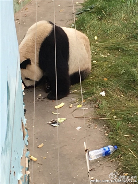 En las fotos publicadas en las redes sociales chinas, el panda gigante se observa sentado próximo a la cerca y husmeando entre lo que parece ser un plátano, una bolsa de leche, una botella de agua y galletas. En algunas fotos, el panda parecía que estaba comiendo.
