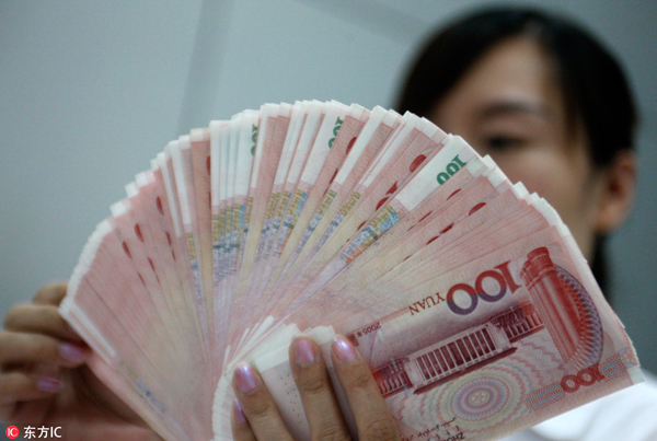 Un empleado chino cuenta billetes de remimbi en un banco de la ciudad de Huaibei, provincia de Anhui. [Foto: IC]