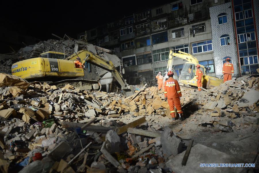 Rescatistas buscan sobrevivientes en el sitio de un accidente en el distrito industrial Lucheng en la Ciudad de Wenzhou, en la provincia de Zhejiang, en el este de China, el 10 de octubre de 2016. Un total de 22 personas ha fallecido en el derrumbe de varios edificios residenciales ocurrido en la ma?ana del lunes en el distrito industrial de Lucheng de la ciudad de Wenzhou. (Xinhua/Str)