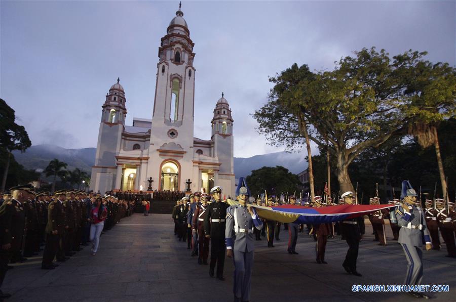 Militares participan en la ceremonia de izamiento de la bandera nacional venezolada en el marco del Día de la Resistencia Indígena, en el Panteón Nacional, en Caracas, capital de Venezuela, el 12 de octubre de 2016. Las autoridades del Gobierno de Venezuela izaron la bandera nacional en el Panteón Nacional en Caracas durante una ceremonia llevada a cabo para dar inicio a los actos conmemorativos del 12 de octubre, Día de la Resistencia Indígena, coincidiendo con la conmemoración del Día de la Raza, que se celebra en otros países de América. (Xinhua/Ricardo Herdenez/AVN)