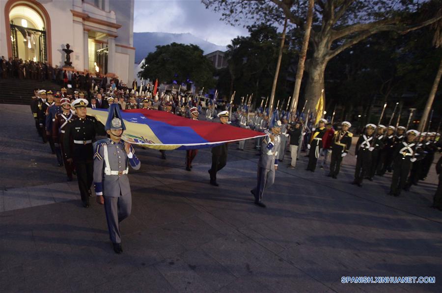CARACAS, octubre 12, 2016 (Xinhua) -- Militares participan en la ceremonia de izamiento de la bandera nacional venezolada en el marco del Día de la Resistencia Indígena, en el Panteón Nacional, en Caracas, capital de Venezuela, el 12 de octubre de 2016. Las autoridades del Gobierno de Venezuela izaron la bandera nacional en el Panteón Nacional en Caracas durante una ceremonia llevada a cabo para dar inicio a los actos conmemorativos del 12 de octubre, Día de la Resistencia Indígena, coincidiendo con la conmemoración del Día de la Raza, que se celebra en otros países de América. (Xinhua/Ricardo Herdenez/AVN)