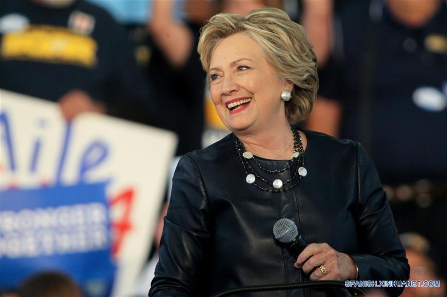 La candidata del Partido Demócrata a la presidencia de Estados Unidos de América, Hillary Clinton, participa en un evento de campa?a en Pueblo, estado de Colorado, Estados Unidos de América, el 12 de octubre de 2016. (Xinhua/Marshall/Rex Shutterstock/ZUMAPRESS)