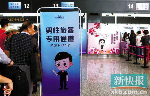 Guangzhou,17/10/2016 (El Pueblo en Línea) - Una foto sin fecha muestra el canal “sólo para hombres” en el control de seguridad del aeropuerto Baiyun de Guangzhou, sur de China [Foto: xkb.com.cn]. A partir de ahora, los hombres podrán disfrutar de este privilegio en el aeropuerto Baiyun de Guangzhou, ya que acaban de habilitarse canales especiales para los hombres en la zona de control de seguridad.