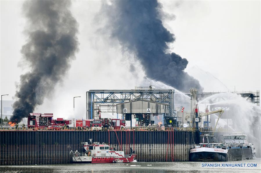 Rescatistas intentan extinguir el incendio en las instalaciones de la compa?ía química BASF, en la ciudad de Ludwigshafen, Alemania, el 17 de octubre de 2016. Una persona murió y varias resultaron heridas el lunes a causa de una explosión ocurrida en la compa?ía de químicos alemana BASF en Ludwigshafen, indicó el servicio informativo alemán Spiegel Online. (Xinhua/Uwe Anspach/DPA/ZUMAPRESS)