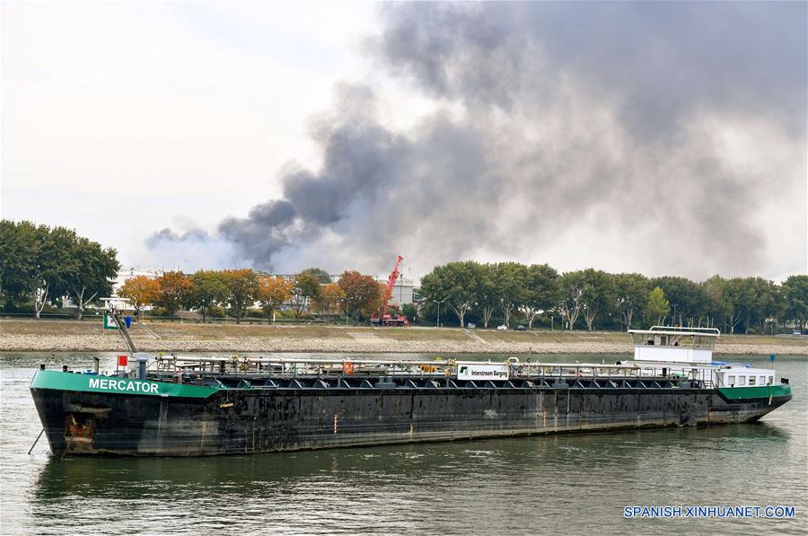 Una columna de humo se levanta sobre la ciudad de Ludwigshafen, Alemania, el 17 de octubre de 2016. La instalación de la compa?ía química alemana BASF en Ludwigshafen, suroeste de Alemania, estalló alrededor de las 11:30 hora local del lunes, lo que causó heridas a varias personas y la desaparición de varias más, informaron BASF y la policía local. (Xinhua/Uwe Anspach/DPA/ZUMAPRESS)