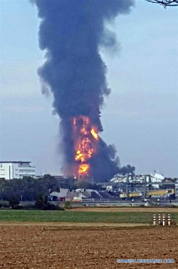 Una columna de humo se levanta sobre la ciudad de Ludwigshafen, Alemania, el 17 de octubre de 2016. La instalación de la compa?ía química alemana BASF en Ludwigshafen, suroeste de Alemania, estalló alrededor de las 11:30 hora local del lunes, lo que causó heridas a varias personas y la desaparición de varias más, informaron BASF y la policía local. (Xinhua/DPA/ZUMAPRESS)