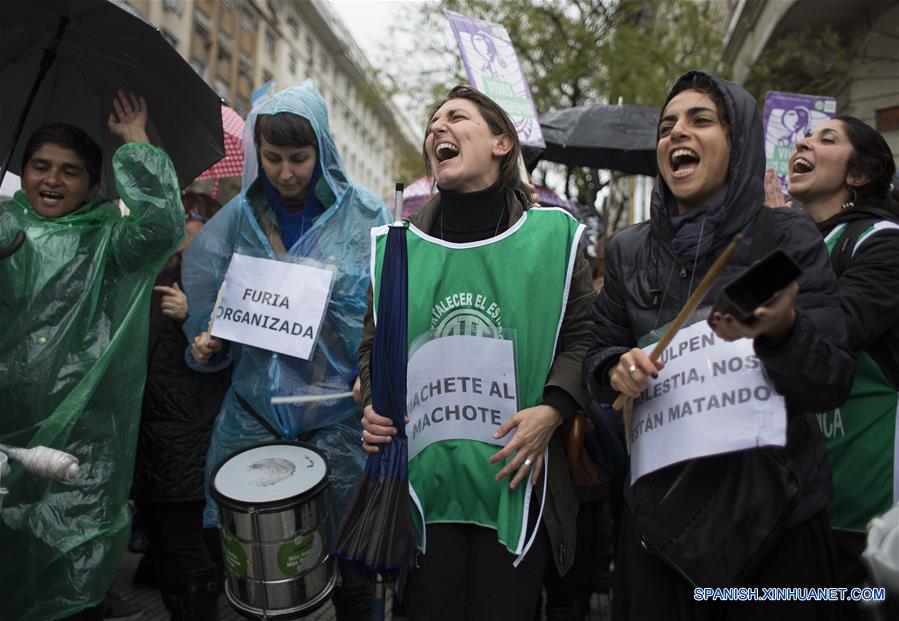 Mujeres participan durante el primer Paro Nacional de Mujeres y movilización bajo el título "Miércoles negro", en la ciudad de Buenos Aires, Argentina, el 19 de octubre de 2016. El colectivo "Ni Una Menos", Mujeres de la Matria Latinoamericana (MuMaLá) y otras organizaciones organizaron el miércoles el paro de mujeres y movilización bajo el título de "Miércoles negro" para decir basta a la violencia de género, convocando a las mujeres a vestirse de negro en se?al de luto, de acuerdo con información de la prensa local. (Xinhua/Osvaldo Fantón/TELAM)