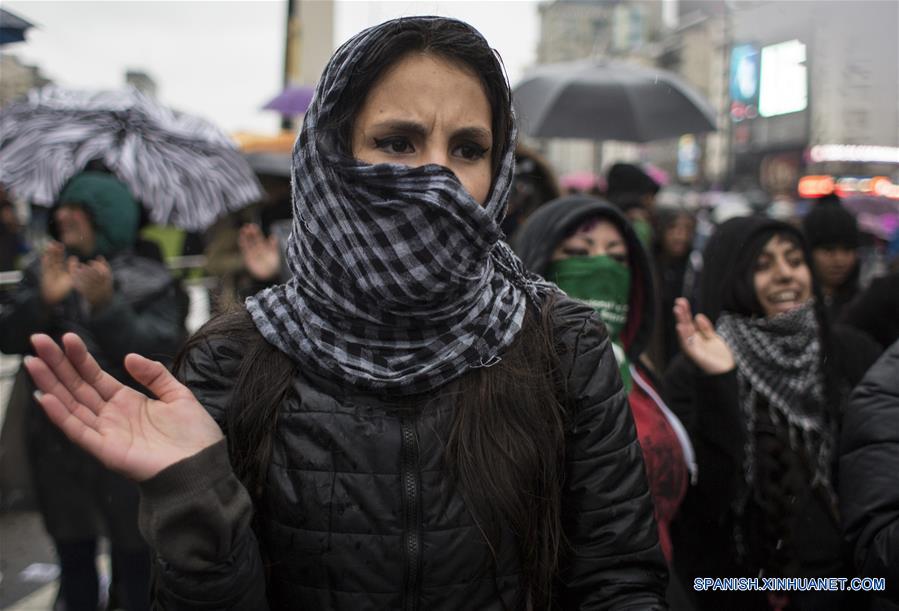 Una mujer participa durante el primer Paro Nacional de Mujeres y movilización bajo el título "Miércoles negro", en la ciudad de Buenos Aires, Argentina, el 19 de octubre de 2016. El colectivo "Ni Una Menos", Mujeres de la Matria Latinoamericana (MuMaLá) y otras organizaciones organizaron el miércoles el paro de mujeres y movilización bajo el título de "Miércoles negro" para decir basta a la violencia de género, convocando a las mujeres a vestirse de negro en se?al de luto, de acuerdo con información de la prensa local. (Xinhua/Martín Zabala)