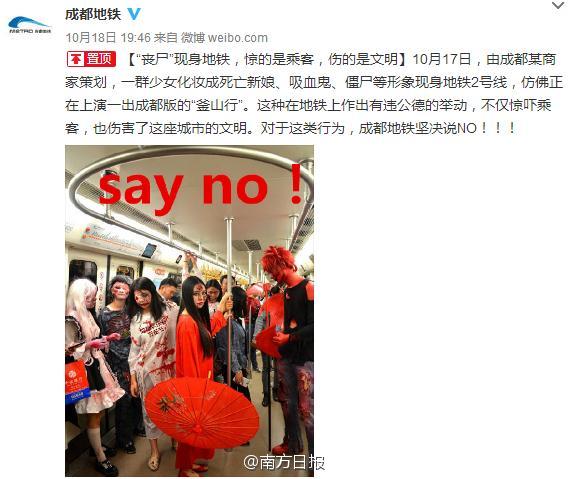 El metro de Chengdu dice “no” a los disfraces de Halloween