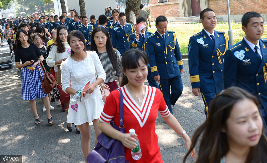 Alrededor de 200 mujeres han asistido a una cita a ciegas con militares en Wuhan, provincia de Hubei, el 22 de octubre de 2016. [Foto: Imagine China]