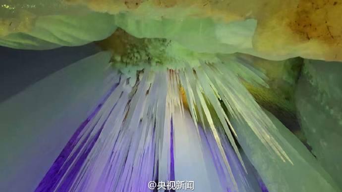El periodo lunar ¨Descenso de las heladas¨ comienza el 23 de octubre de este a?o. Recientemente, la temperatura de la provincia de Shanxi, norte de China, ha descendido hasta los 8 grados. En la cuerva de la monta?a Luya, la mayor cuerva de hielo de China, se puede ver hielo reluciente y tímpanos de hielo por todas partes. [Foto:Weibo.com]