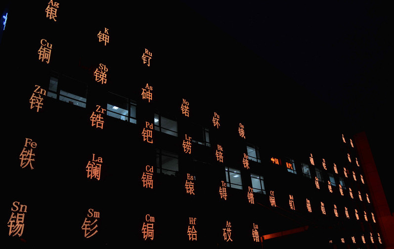 Tabla periódica de los elementos ilumina un edificio de Shenyang
