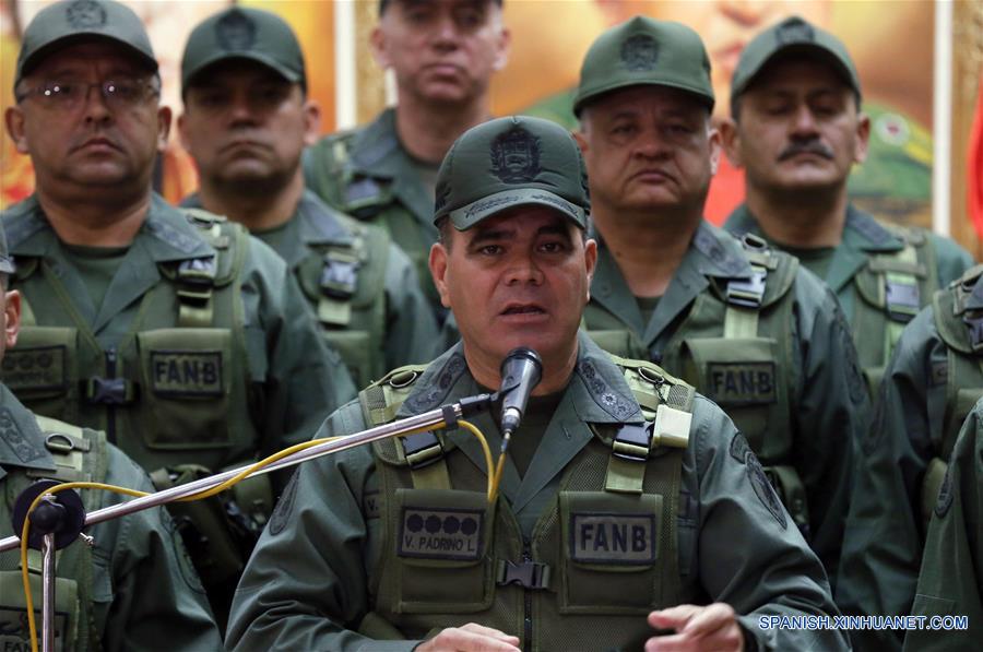 El ministro de Defensa de Venezuela, Vladimir Padrino López (frente), realiza un pronunciamiento en nombre de la Fuerza Armada Nacional Bolivariana (FANB), en la sede del Ministerio de Defensa, en Caracas, Venezuela, el 25 de octubre de 2016. La Fuerza Armada Nacional Bolivariana (FANB) rechazó el martes el llamado a la desobediencia realizado el pasado 23 de octubre en sesión especial de la Asamblea Nacional (Legislativo), informó el ministro de Defensa de Venezuela, Vladimir Padrino López. (Xinhua/Gregorio Terán/AVN)