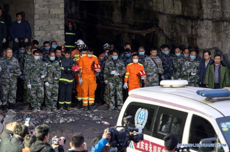 Rescatistas oran por las víctimas en la mina de carbón Jinshangou, en el distrito de Yongchuan de Chongqing, en el suroeste de China, el 1 de noviembre de 2016. Los rescatistas están trabajando al máximo para encontrar a los 20 mineros que permanecen atrapados en una mina de carbón en la municipalidad de Chongqing, en el suroeste de China, después de una explosión de gas. Un total de 35 mineros estaban trabajando en el pozo cuando se produjo el accidente. Dos de ellos pudieron escapar ilesos, mientras que 33 quedaron atrapados en un pozo de la mina de carbón Jinshangou, en el distrito de Yongchuan, a las 11:33 de ayer lunes. (Xinhua/Liu Chan)