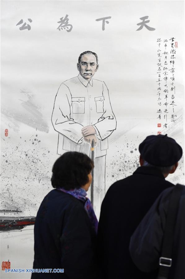 BEIJING, noviembre 8, 2016 (Xinhua) -- Personas visitan una exposición de pintura que conmemora el 105 aniversario del nacimiento de Sun Yat-sen, en el Palacio Cultural de las Nacionalidades, en Beijing, capital de China, el 8 de noviembre de 2016. La exposición de pintura comenzó el martes. (Xinhua/Chen Yehua)