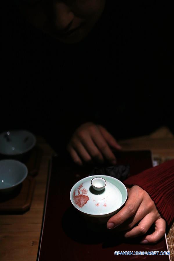 FRANKFURT, noviembre 12, 2016 (Xinhua) -- Un visitante prueba el té en la ceremonia de inauguración de la Casa China de Té en Frankfurt, Alemania, el 12 de noviembre de 2016. (Xinhua/Luo Huanhuan)