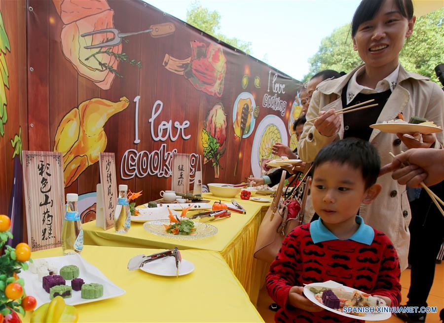 Personas prueban platillos durante un concurso de cocina de un festival cultural ciudadano, en Shanghai, en el este China, el 12 de noviembre de 2016. Alrededor de 100 ciudadanos participaron el sábado en el evento. (Xinhua/Liu Ying)