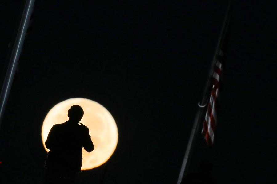 Un hombre hace fotos de la "superluna" sobre el National Mall en Washington, Estados Unidos, el 14 de noviembre de 2016. [Foto/Agencias]