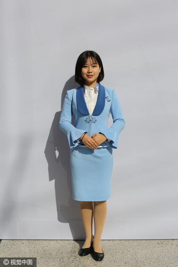 Una voluntaria muestra su bello uniforme azul confeccionado para la Conferencia Mundial de Internet que se celebrará en Wuzhen, provincia de Zhejiang, del 16 al 18 de noviembre. [Foto: VCG]