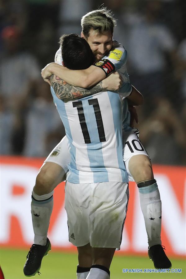 En el estadio del Bicentenario, en la ciudad de San Juan, 1.200 kilómetros al oeste de Buenos Aires, el capitán abrió la cuenta de tiro libre, a los 10 minutos, y luego marcaron Lucas Pratto (22') y Angel Di María (83').(Xinhua/AP)