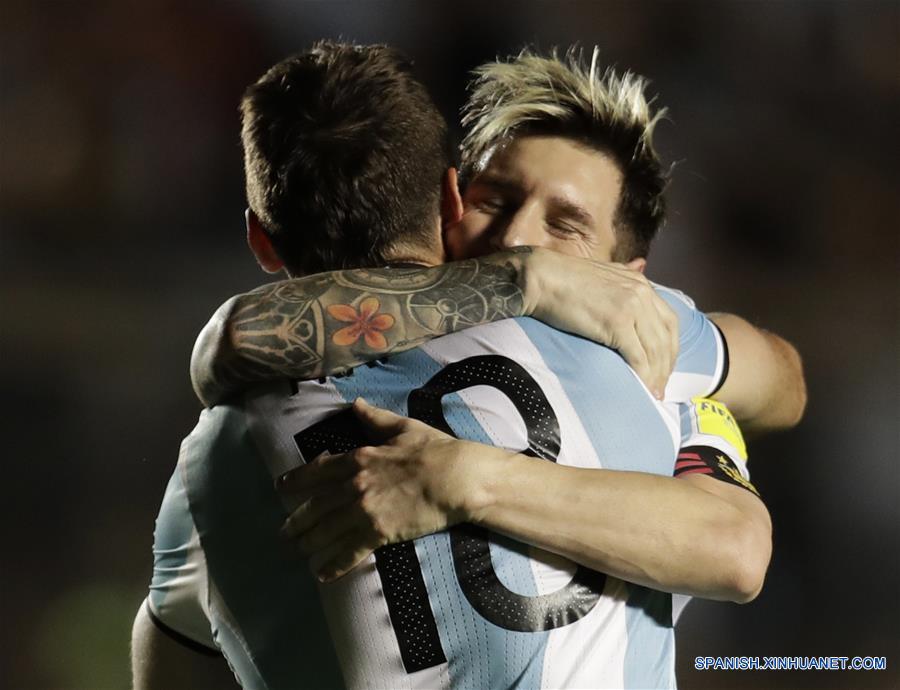 En el estadio del Bicentenario, en la ciudad de San Juan, 1.200 kilómetros al oeste de Buenos Aires, el capitán abrió la cuenta de tiro libre, a los 10 minutos, y luego marcaron Lucas Pratto (22') y Angel Di María (83').(Xinhua/AP)