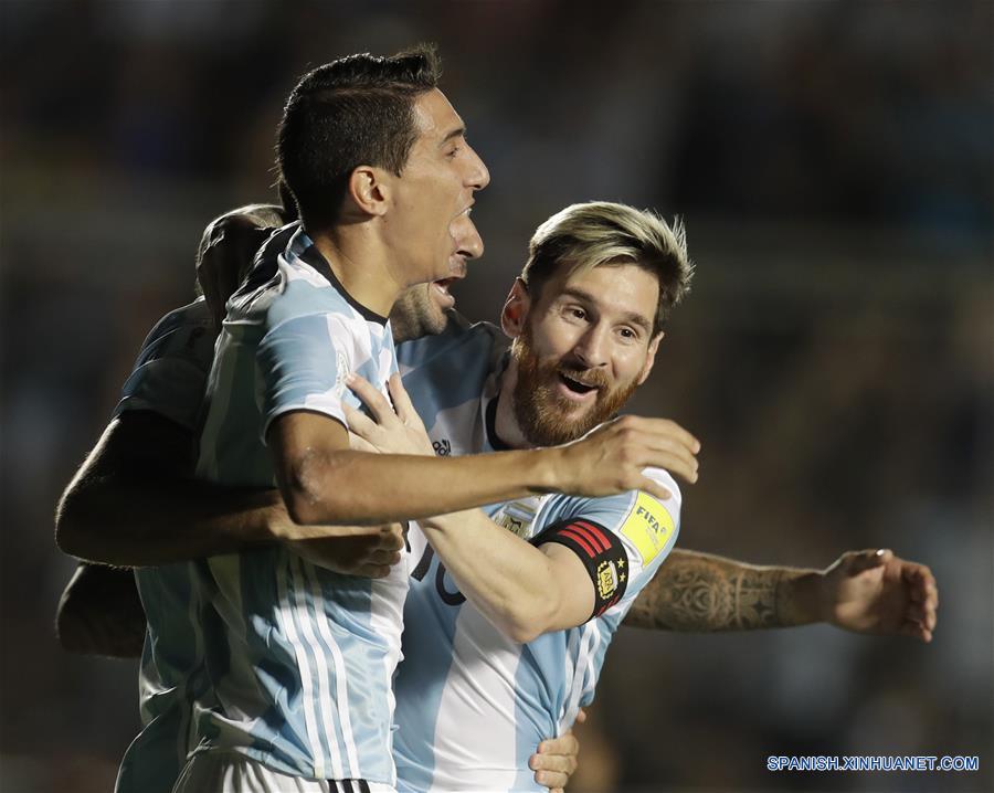 BUENOS AIRES, 15 nov (Xinhua) -- De la mano de su astro Lionel Messi, el seleccionado argentino de fútbol goleó hoy 3-0 como local a Colombia y se metió nuevamente en zona de repesca para el Mundial Rusia 2018.