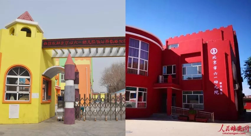 En 2018, la Municipalidad de Beijing ayudó a iniciar el Proyecto Escolar del área Nueva de Xiong'an. A finales de 2018, un total de 45 escuelas nuevas del área nueva habían establecido asociaciones de cooperación con escuelas de calidad de la región Beijing-Tianjin-Hebei. La imagen muestra la Guardería Liuyi de Beijing en Xiong′an antes y después de la asociación.