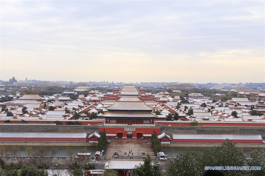Vista de la Ciudad Prohibida, cubierta por nieve en Beijing, capital de China, el 21 de noviembre de 2016. Beijing recibió su primera nevada de este a?o el lunes. (Xinhua/Zhang Yuwei)
