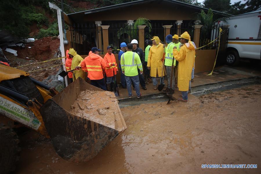 Personal del gobierno participa en labores de búsqueda en el sitio de un deslizamiento de tierra en el sector de Arraiján, provincia de Panamá Oeste, Panamá, el 22 de noviembre de 2016. De acuerdo con información de la prensa local, el Centro Nacional de Huracanes estadounidense informó que la tormenta tropical Otto se convirtió en huracán categoría 1, siendo el séptimo huracán de la temporada 2016, y se espera que en su trayectoria afecte también a Costa Rica y Nicaragua. (Xinhua/Mauricio Valenzuela)