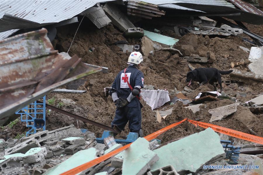 CIUDAD DE PANAMA, noviembre 23, 2016 (Xinhua) -- Un rescatista participa en labores de búsqueda en el sitio de un deslizamiento de tierra en el sector Nueva Libia, en la Ciudad de Panamá, capital de Panamá, el 23 de noviembre de 2016. La actual trayectoria del huracán "Otto" amenaza una franja de América Central donde se sitúan Nicaragua, Costa Rica y Panamá, a la espera de que impacte el jueves tierras caribe?as e ingrese a territorio nicaragüense. En Panamá, los efectos de "Otto" ya causaron al menos tres muertos la víspera, quienes perecieron a causa de un deslizamiento de tierra y por la caída de un árbol, además de que nueve personas resultaron atrapadas por el derrumbe de cuatro casas, y se han suspendido las clases, especialmente en las zona que se espera resulten más afectadas tras el huracán. (Xinhua/Mauricio Valenzuela)